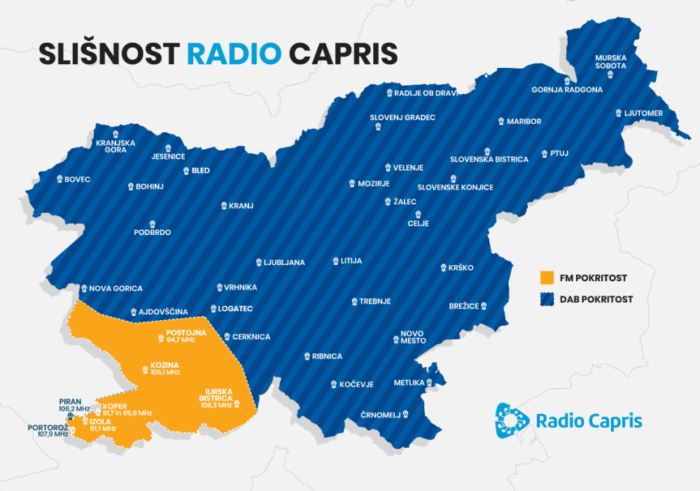 S koncem leta 2022 smo prisotni tudi v omrežju DAB+ in tako slišni po celotni Primorski in v Ljubljani, Kranju ter Sežani.